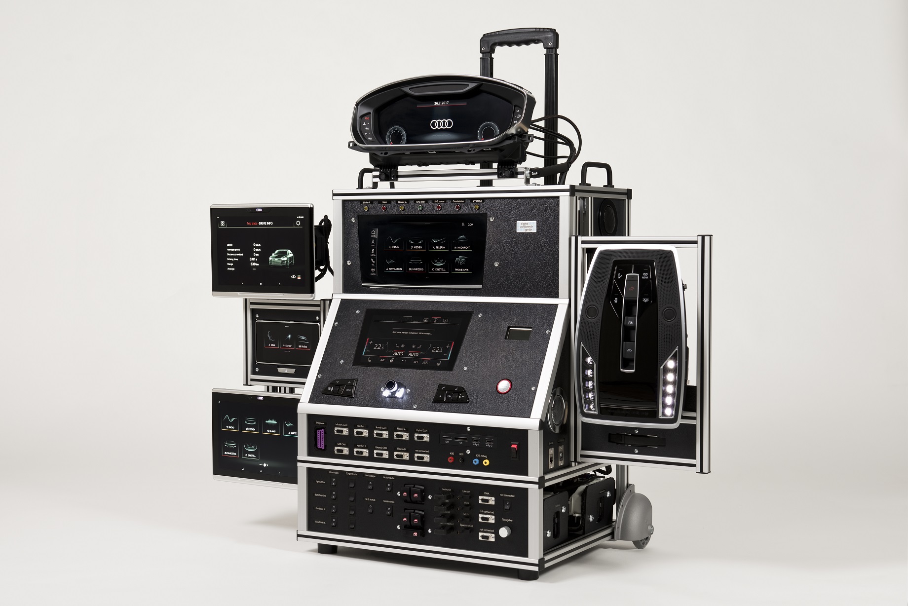 Unser umfangreichstes System für die Simulation und Testbarkeit einer kompletten Umgebung ähnlich einem echten Fahrzeug. Bietet zusätzliche Komfort-Features aus dem Fond-Bereich des Fahrzeugs.